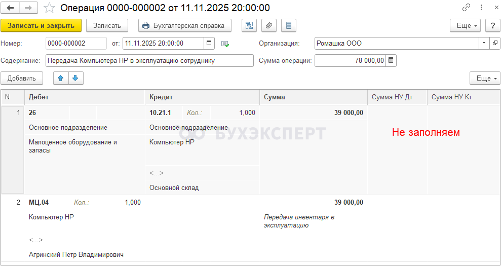 Спасибо, в этом случае при Операции вручную при принятии малоценки по Кт какой счет использовать с Дт 10.21.1?