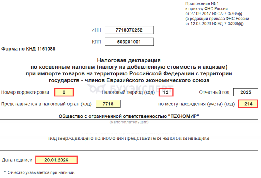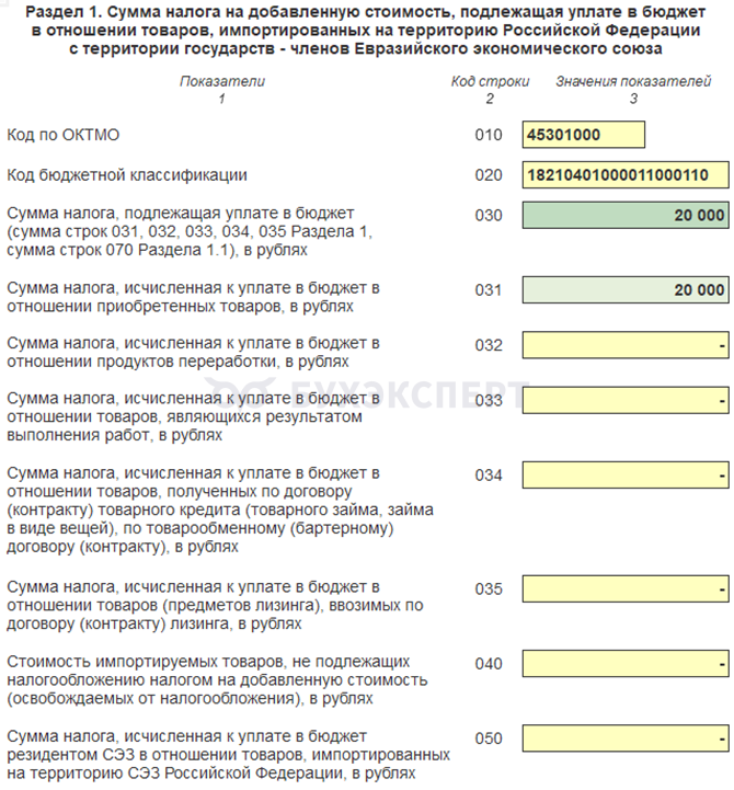 - Раздел 1 — НДС к уплате в бюджет по импорту из ЕАЭС