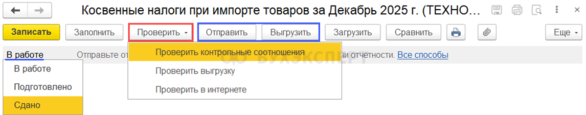 - Отчеты — Регламентированные отчеты — Косвенные налоги при импорте товаров
