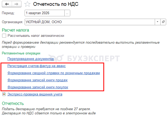 - Декларация по НДС за 1 квартал 2026 в 1С. Оптимизация работы: ускоряем процесс подготовки отчетности