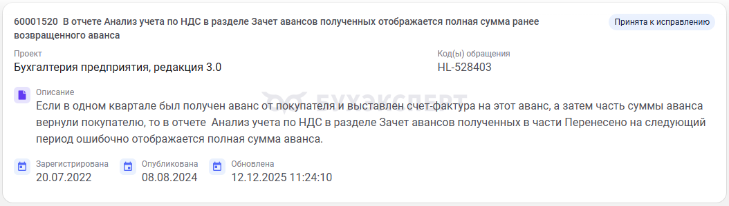 Отчеты — Анализ учета по НДС — Авансы полученные.