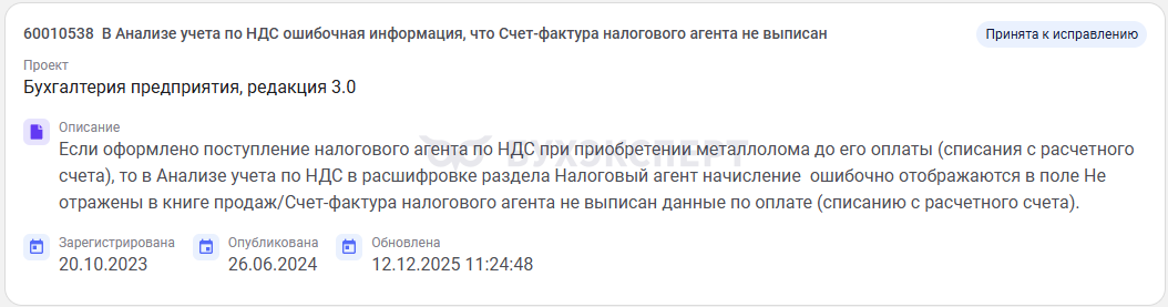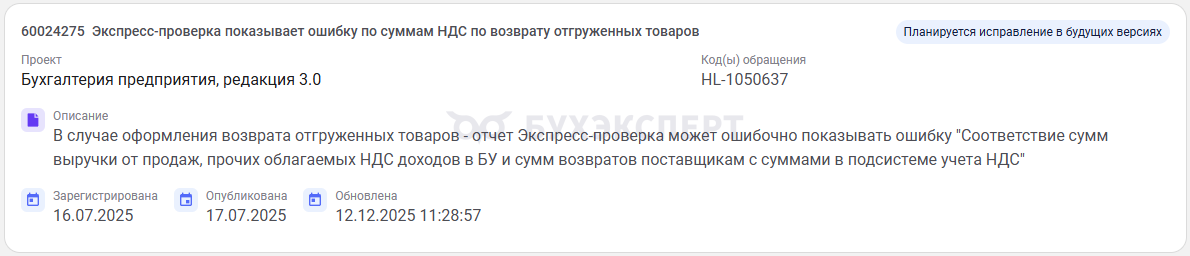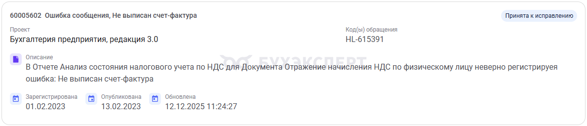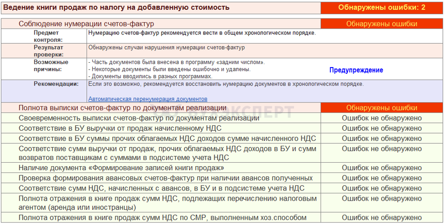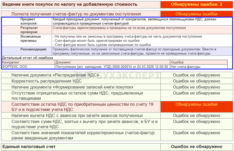 Рекомендации по исправлению ошибки и в каких документах есть ошибка.
