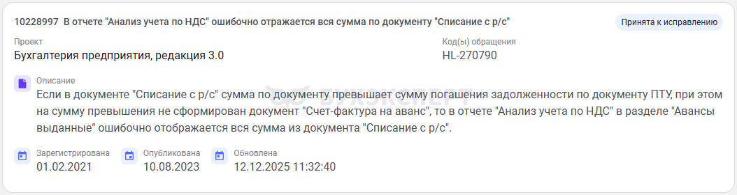 Если есть ошибка в зачете аванса, то принятый к вычету НДС с аванса не будет восстановлен на счете 76.ВА.