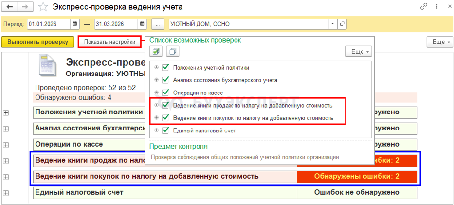 Помощник по НДС – проверит и подскажет, какие регламентные операции надо выполнить.