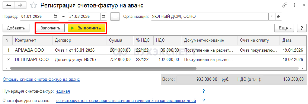 Обработка Регистрация счетов-фактур на аванс в 1С