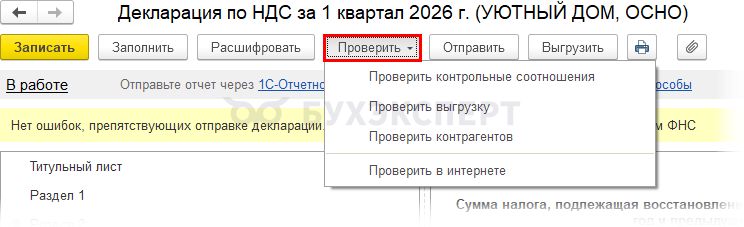 - Тройная проверка декларации по НДС в 1С – БУ, НУ по НДС, Декларация