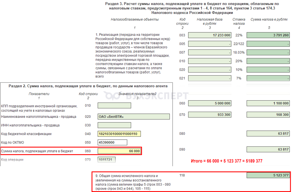 - Раздел 3 стр. 118 «Общая сумма НДС, исчисленная с учетом сумм восстановленных сумм налога»