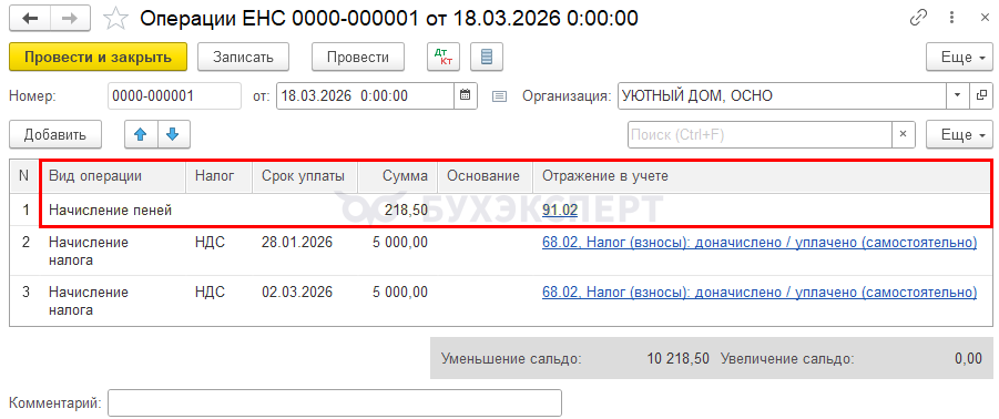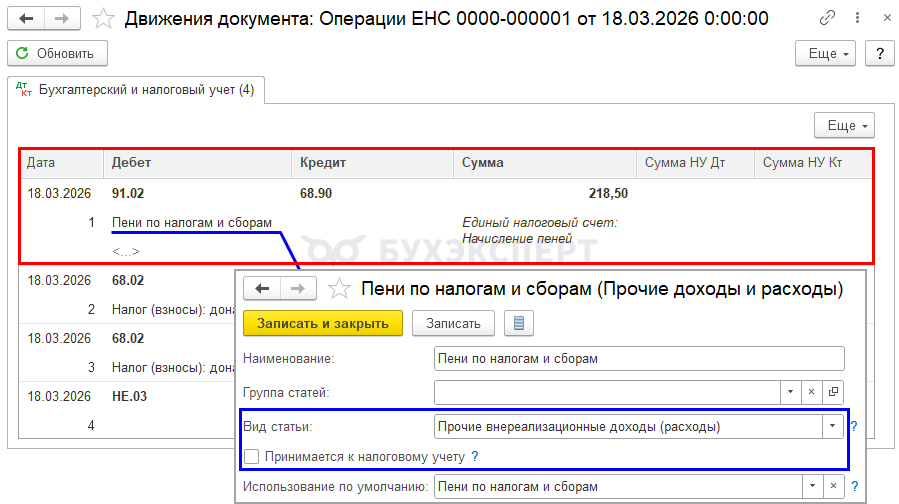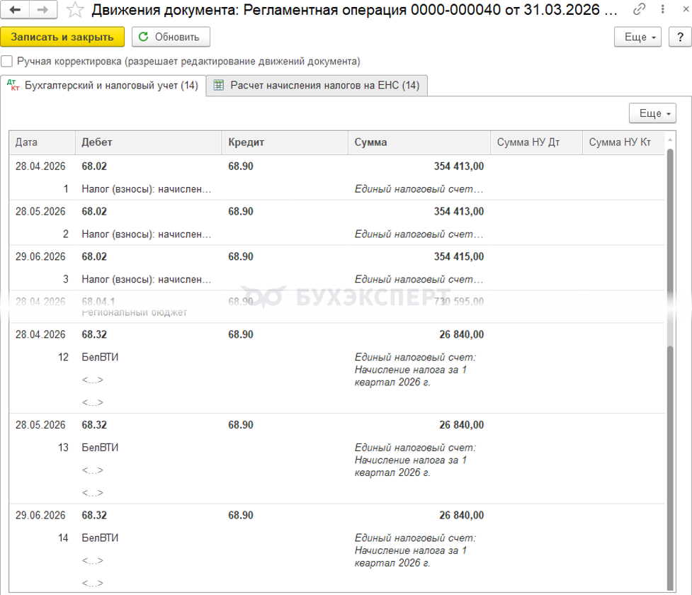 Операции — Закрытие месяца — Начисление на ЕНС.