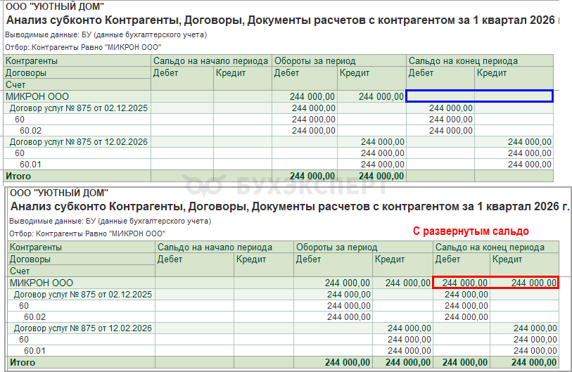 - Анализ субконто: Контрагенты и Договоры в 1С