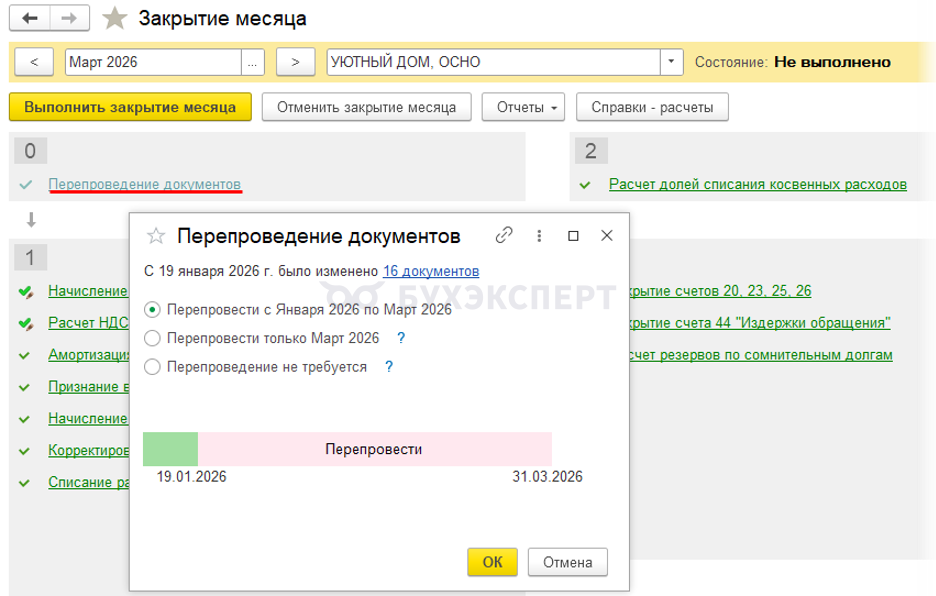Операции — Закрытие месяца — ссылка Перепроведение документов.