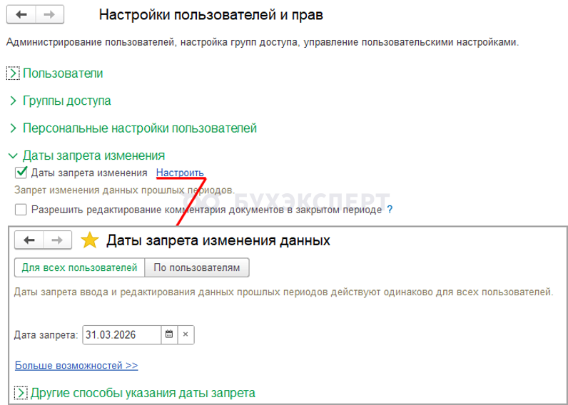 Дата запрета редактирования в 1С Бухгалтерия 8.3