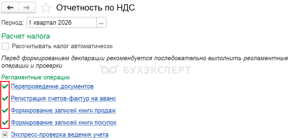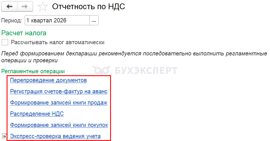 - Регламентные операции по НДС