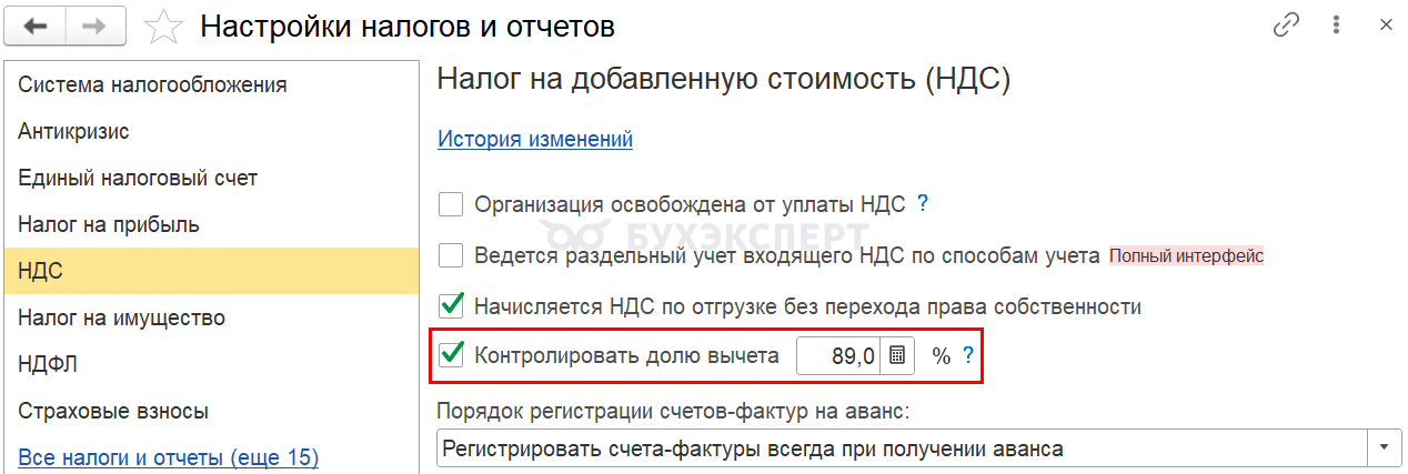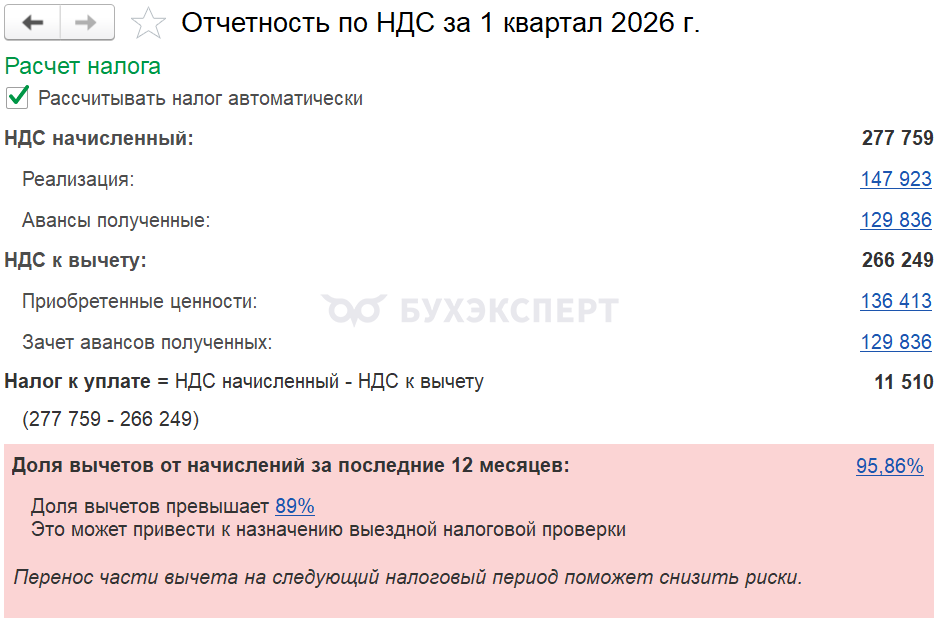 После этого Помощник по НДС будет автоматически предупреждать о превышении доли вычетов.