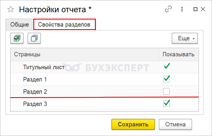 Настройка состава отчета