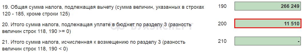 - если стр.118 > стр. 190, то в стр. 200 — НДС к уплате в бюджет