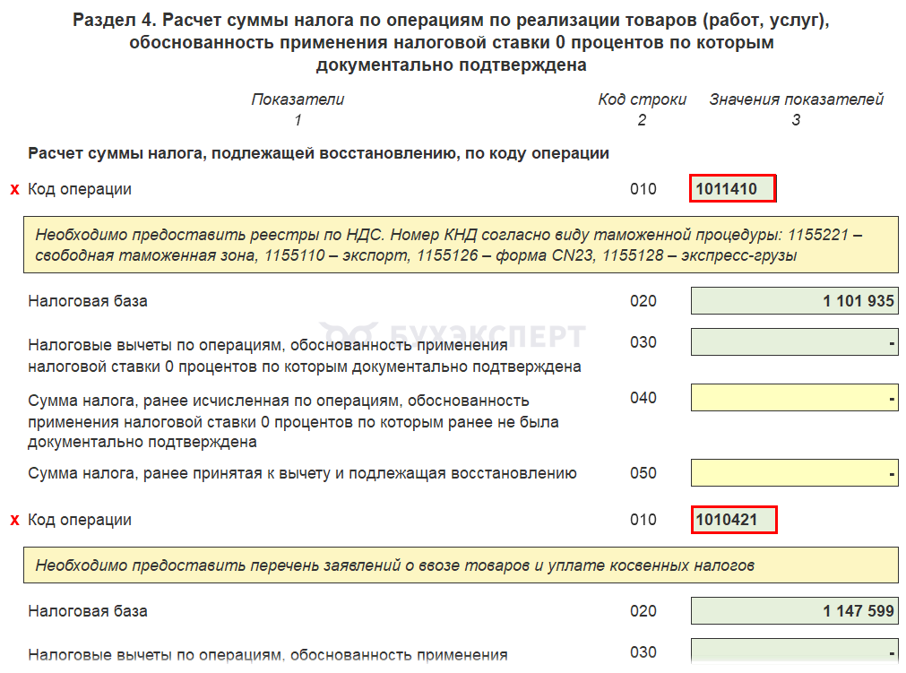 - Введены новые рекомендованные коды видов операций для декларации по НДС