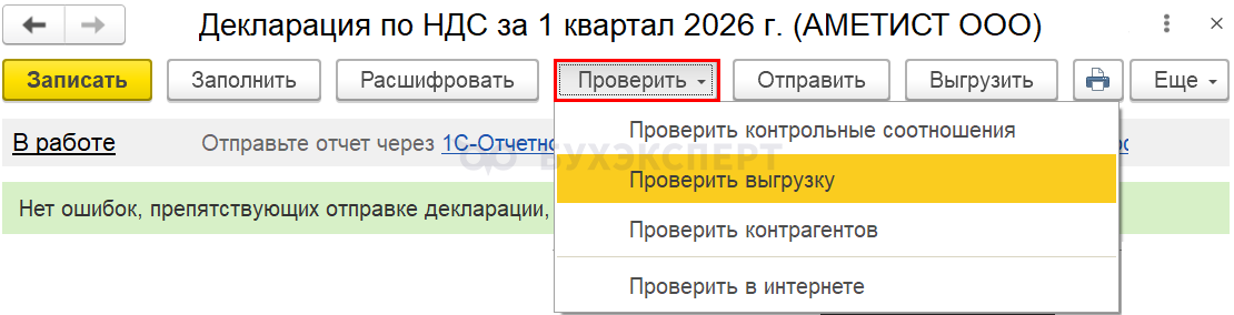 Подготовка декларации по НДС в 1С