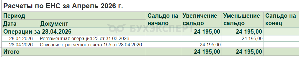 - по дебету — погашение совокупной обязанности на дату перечисления ЕНП