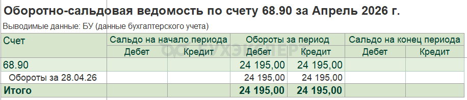 Налоговая обязанность на счете 68.90 формируется автоматически: