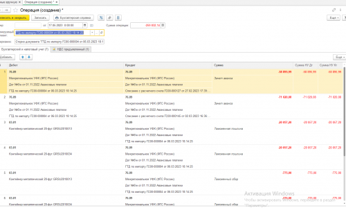 При наличии аванса на лицевом счете в ФТС, в документе оставьте сторно зачета аванса на счете 76.09 (проводка Дт 76.09 Кт 76.09 сторно исходного зачета).