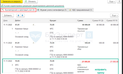 Добрый день, в примере изображения ГТД по импорту, указано исправить сумму, а на какую исправлять? У меня в проводках встает сумма остатка по ДТ, уменьшенная на корректировку с положительным знаком. И тогда в ОСВ по 19сч она зависает и не засчитывается