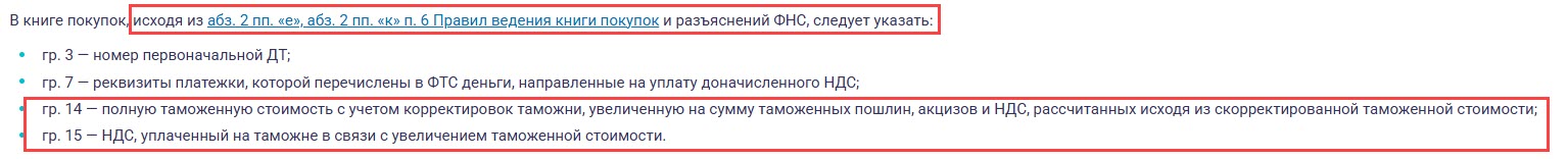 - гр. 15 — НДС, уплаченный на таможне в связи с увеличением таможенной стоимости.