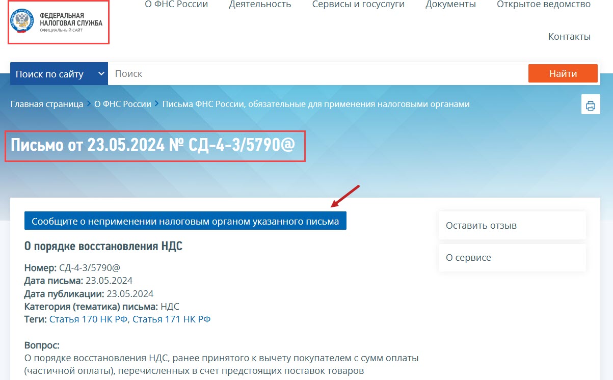 Здесь по ссылке Сообщите о неприменении налоговым органом данного письма (вверху ссылка на синем фоне)