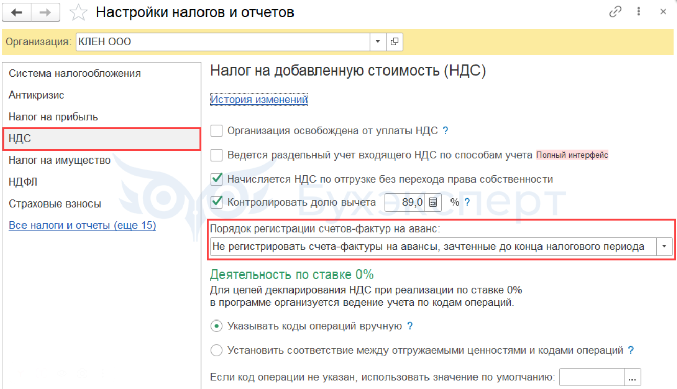Исчисление НДС по авансам, полученным от покупателей на расчетный счет, в 1С
