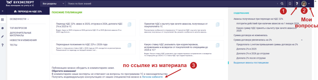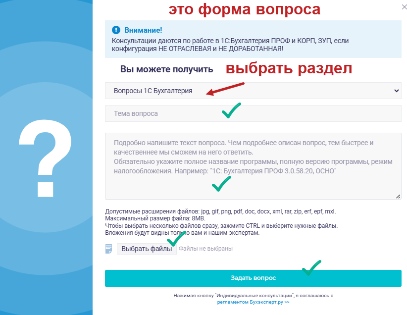 Если нужна подписка на Индивидуальные консультации (ответы на вопросы по работе в 1С), здесь справа внизу «всплывает» форма связи