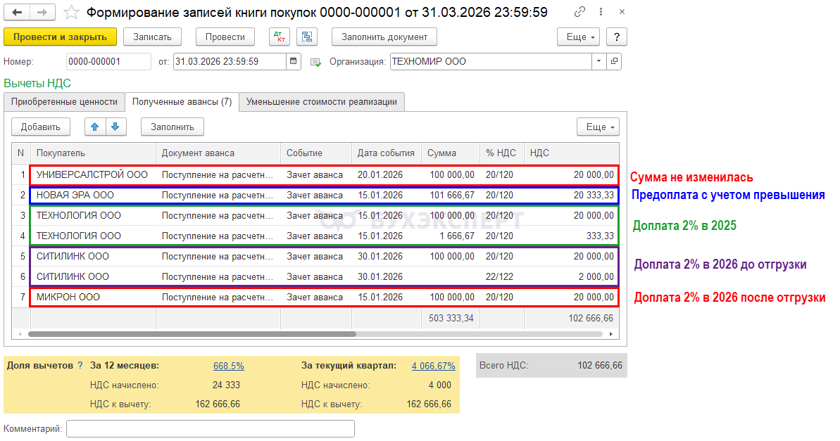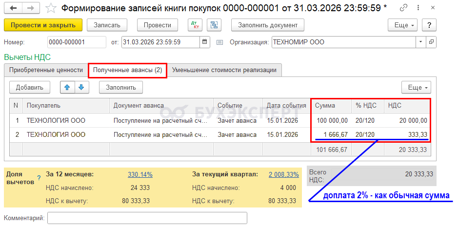 Какую сумму НДС принять к вычету при зачете аванса в 2026