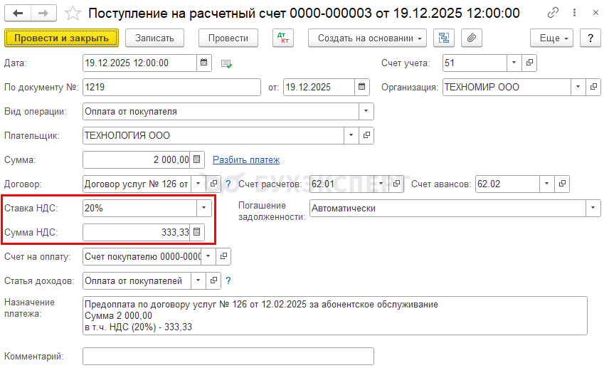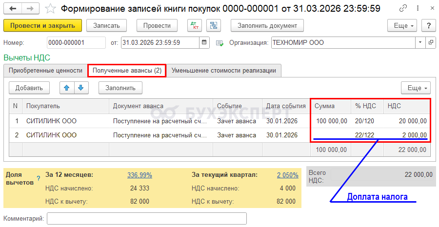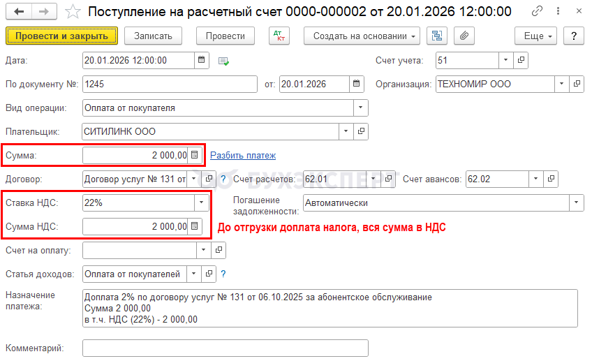 Подробнее Переход НДС 22%: аванс в 2025, отгрузка в 2026, доплата НДС 2% в 2025 в 1С