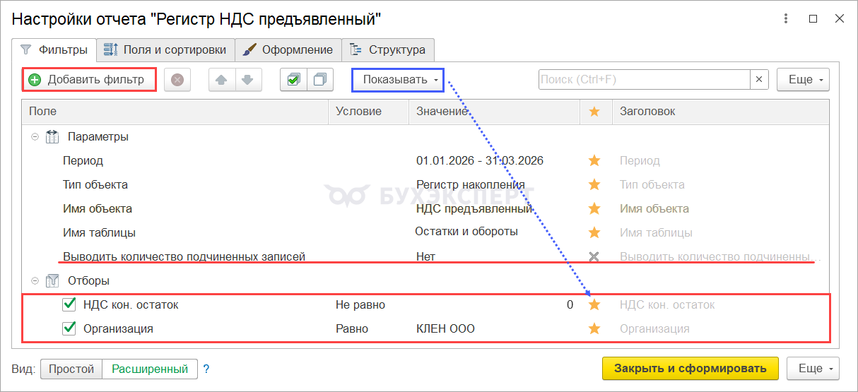 На вкладке Фильтры по кнопке Добавить фильтр укажите отборы: