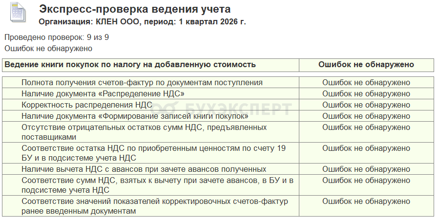 Но при проверке учета за январь 2026 выявила ошибку несоответствия остатка НДС по приобретенным ценностям по счету 19 БУ и в подсистеме учета НДС Экспресс-проверка: