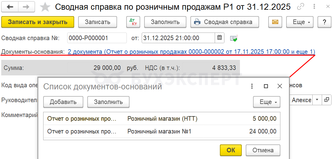 PDF , то Документом-основанием для заполнения Сводной справки по розничным продажам будут: