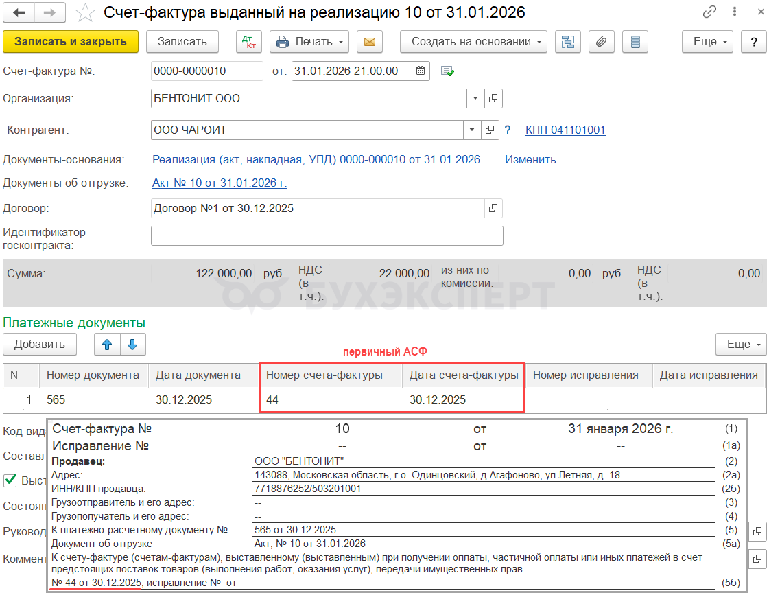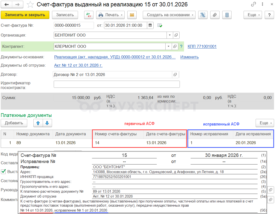 20.01.2026 обнаружена ошибка в примененной ставке НДС (выставлен исправительный АСФ по ставке 10/110).