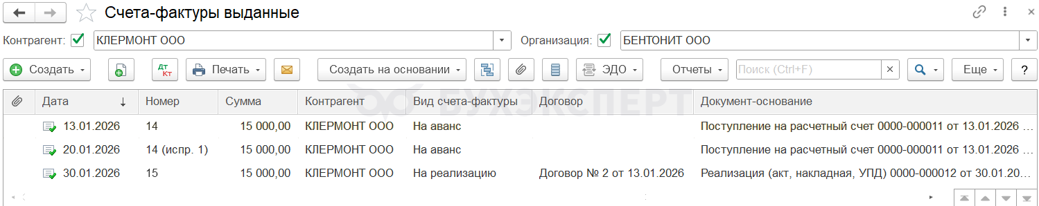 30.01.2026 оба аванса зачтены в момент отгрузки.