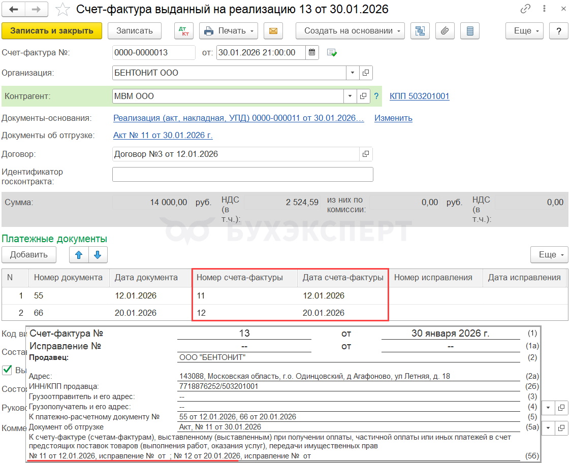 30.01.2026 аванс зачтен в момент отгрузки по ставке 10%.
