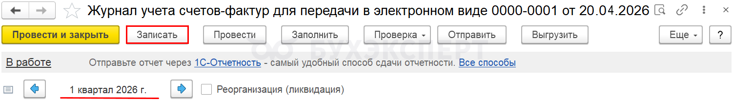 Направьте отчет в ИФНС по кнопке Отправить формы журнала или из раздела Отчеты при подключенной 1С-Отчетности.