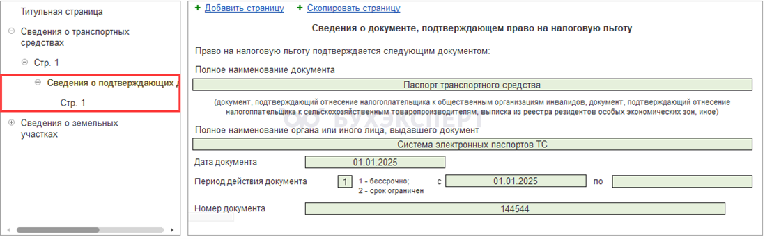 Нажмите Заполнить, и на странице Сведения о транспортных средствах будут автоматически проставлены сведения, если заполнена льгота хотя бы по одному из транспортных средств.