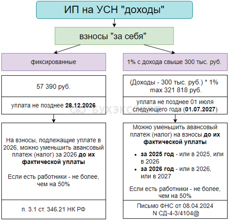 - С доходов — страховые взносы в размере 1% от суммы дохода свыше 300 тыс. руб. за расчетный период (нарастающим итогом с начала года)