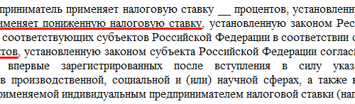Поле Индивидуальный предприниматель применяет налоговую ставку __ процентов, установленную заполняется только если ИП применяет (п. 19 Приказ ФНС от 09.12.2020 N КЧ-7-3/891@):