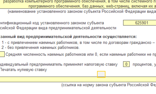 - налоговую ставку 0 %, установленную законом субъекта РФ согласно п. 3 ст. 346.50 НК РФ
