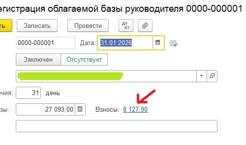- документ Регистрация облагаемой базы руководителя (Зарплата и кадры — Регистрация облагаемой базы руководителя)
