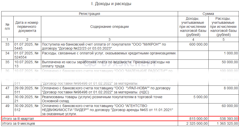 - Книга учета доходов и расходов (раздел I)