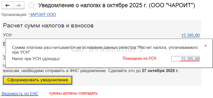 По ссылке Уведомление о налогах открывается Помощник по ЕНС.