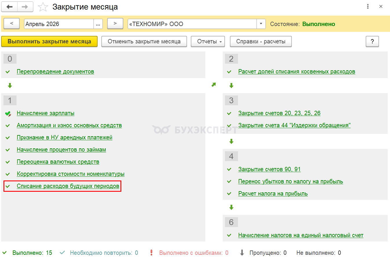 Для автоматического ежемесячного учета затрат на страховую премию ОСАГО выполните процедуру Закрытие месяца регламентная операция Списание расходов будущих периодов в разделе Операции — Закрытие месяца.