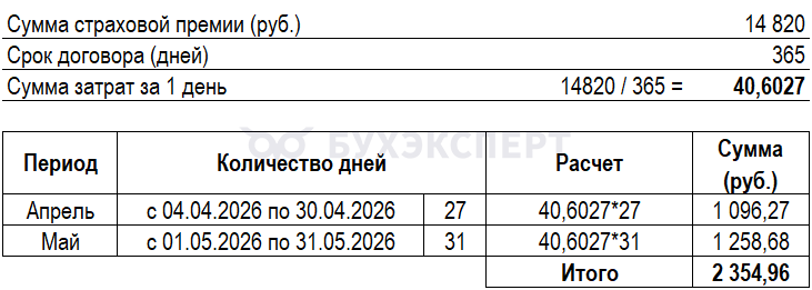 | Отражение в учете затрат на страховую премию за апрель | |||||||