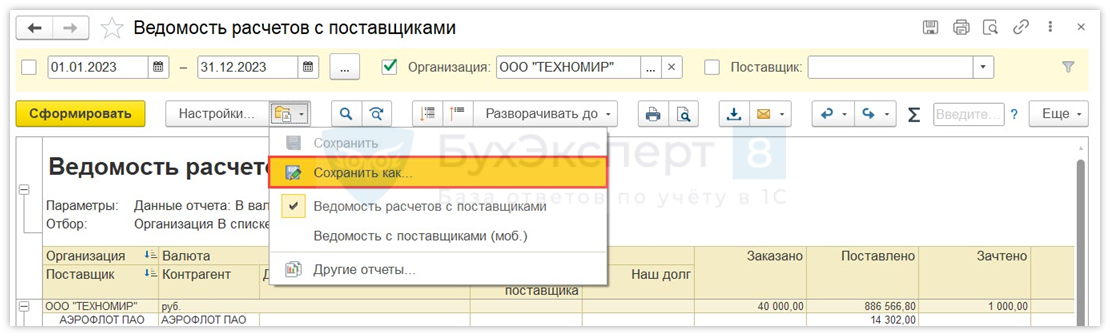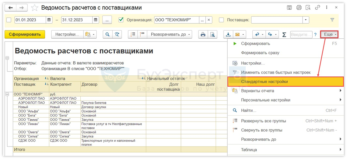 Настройка отчетов для контроля взаиморасчетов в 1С УТ 11.5