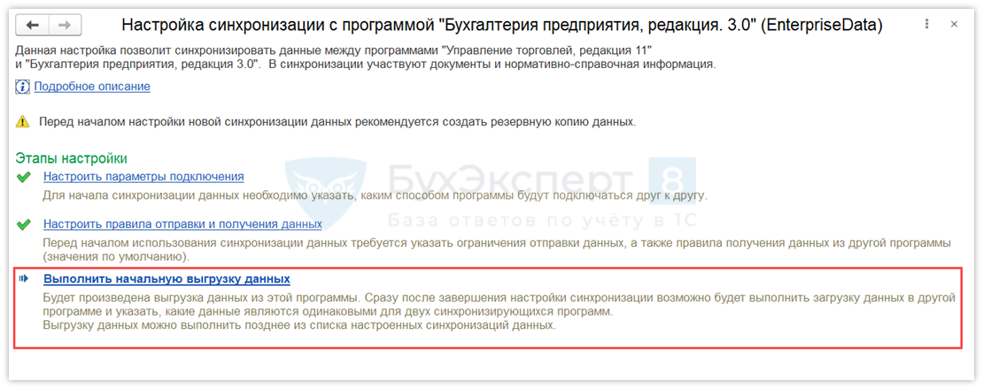 Обязательно сделайте резервное копирование баз 1С УТ и БП перед началом синхронизации!