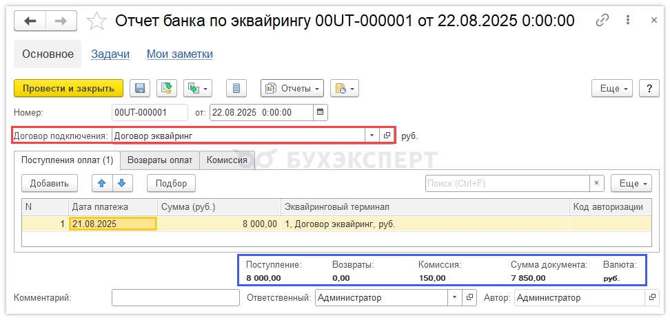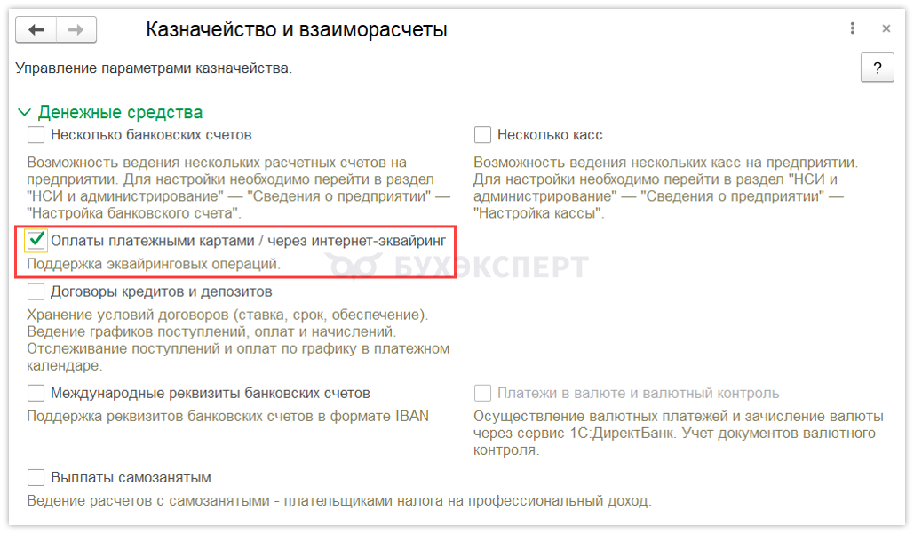 Казначейство – Эквайринговые операции